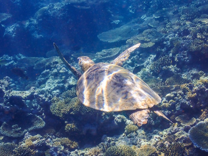 Although much more frequently seen, the Green Sea Turtles are still really endearing. Their carapace may include shades of green, dark brown, olive, yellow and black. Some get covered with algae too as you can see in some of the photos. They are called “green” sea turtles for their layer of green fat that lies under their shell – the result of their vegetable diet.