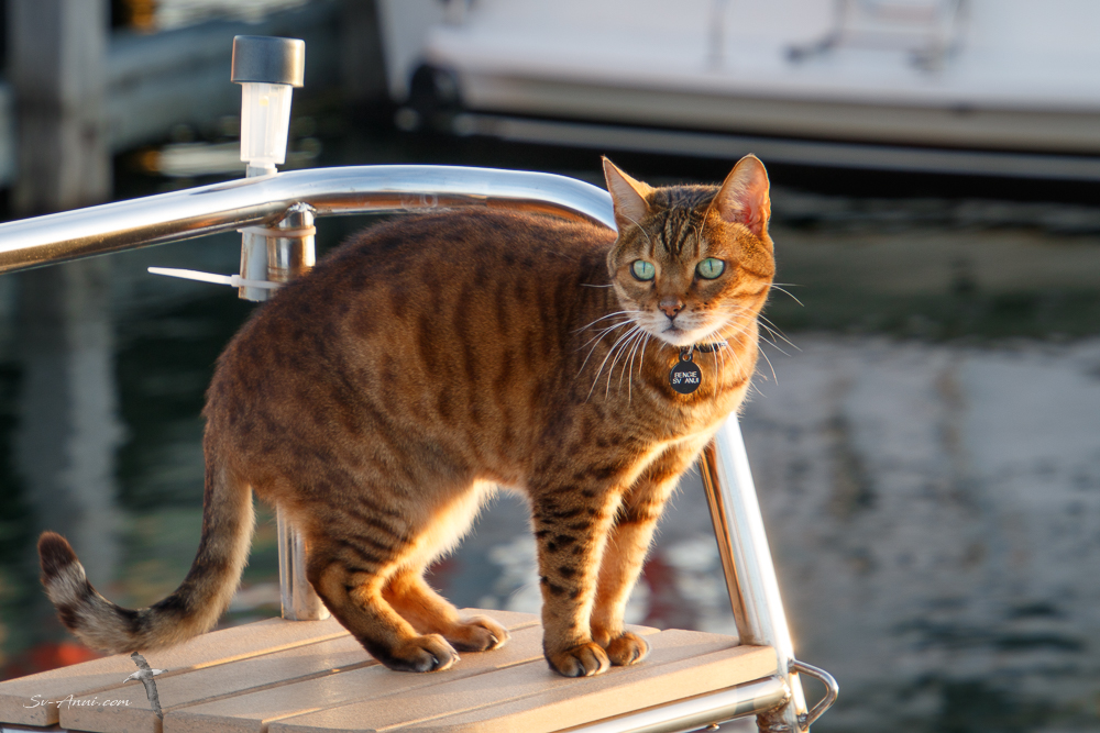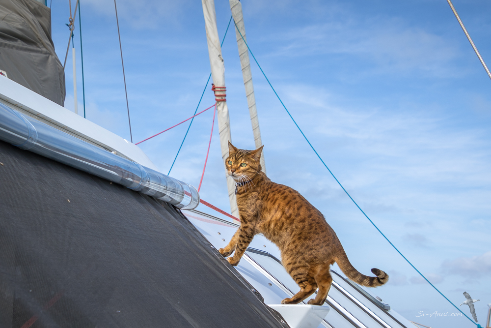 • “Good-looking” is an understatement–she is stunning. I think it is really cool that you are able to have a pet while living about your catamaran. I am sure she was some comfort too when you were forced to limit contact with other humans earlier this year.