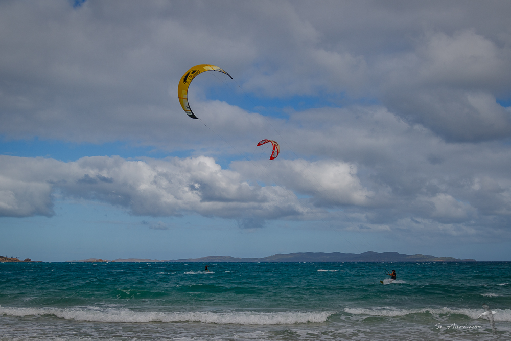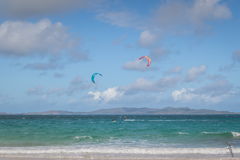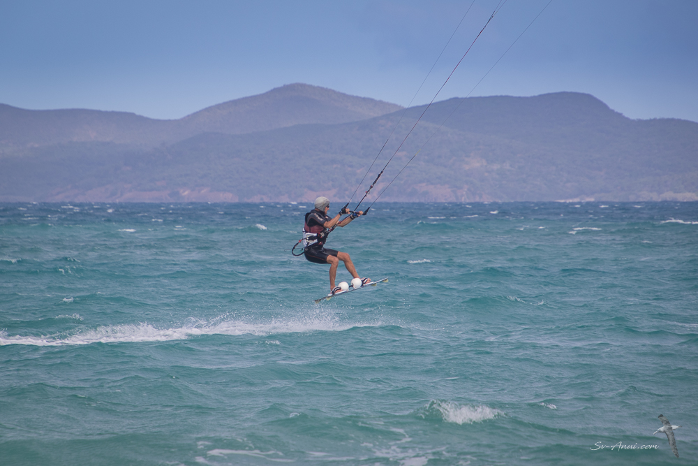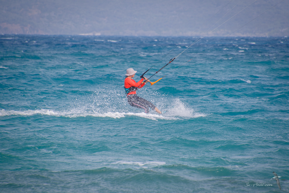 Yes everything about the kite surfing trips was a bit wild: getting there by dinghy (a half an hour trip buffeted by wind and waves), launching the kites in the waves… You need 20 to 25 knot winds to fly these things! But we had great fun.