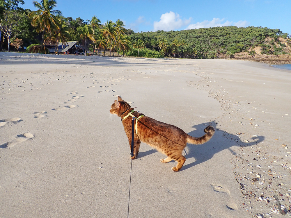 And Bengie… she likes her walks and it is fun to take her ashore in the dinghy, she hops off on the beach and trots away, sniffing, digging and meowing happily! Just as adventurous as us!