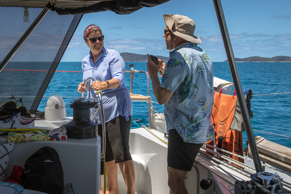 We felt a little flat when Deb & Grant left, but there were jobs to attend to while at Airlie Beach with good internet coverage and services handy. First there were the heavy burdens: dealing with Papa’s estate and its emotional roller coaster, organising some heirloom pieces to be shipped to Australia from France, addressing mistakes made by an incompetent financial institution in the set up of Chris’s pension which was threatening to result in a huge tax bill. And then there was the practical list of to do’s: tons of laundry, re-provisioning, servicing the engines, getting the torn dinghy grab handle fixed by Whitsunday Ocean Services, the same company which repaired our kayak, getting Chris’s laptop back from repair at Leading Edge Computers, attending to medical checks for both of us. It had all come together really well… that is until the tachometer on one of our engines stopped working – a problem with the alternator! It was beyond Wade’s capability and we had to get a ‘man’ on the job… which is happening early next week. Till then we are stuck! Argh!