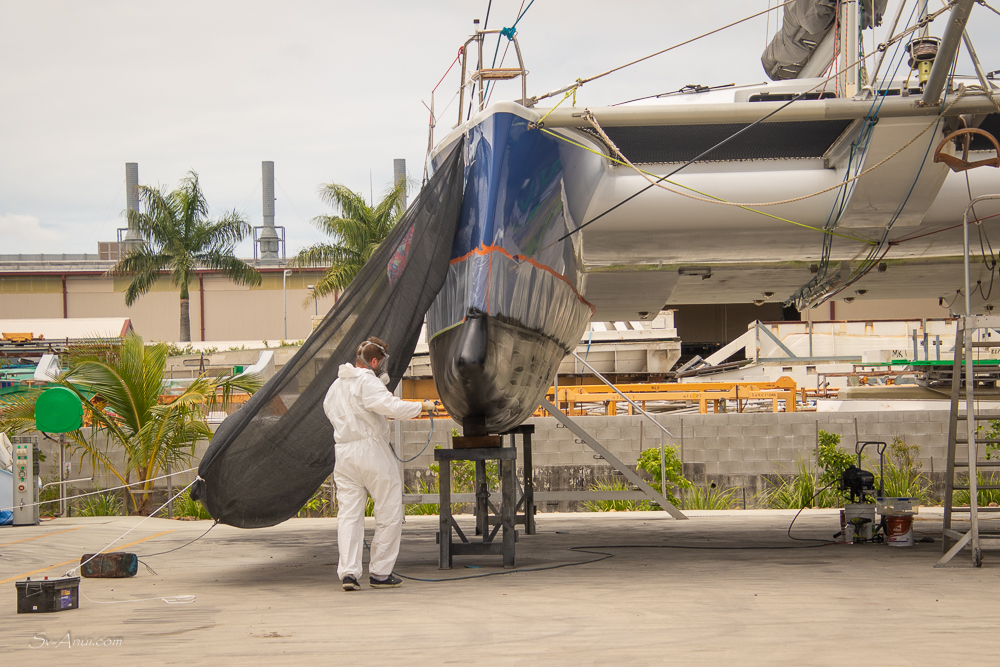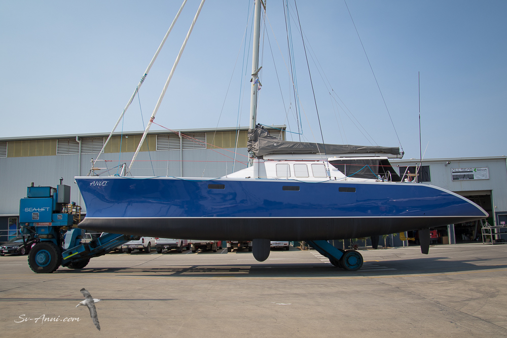2. I really like this set of photos, so many details! I’m not familiar at all with the two-blade props and no scag fin. The hulls look perfect again! It’s so weird that your daggerboards are different, gotta wonder how that came about? With Anui in dry dock, it’s easy to see how big she really is, wow! Great post, thanks for sharing this. 😎❤️🇦🇺
