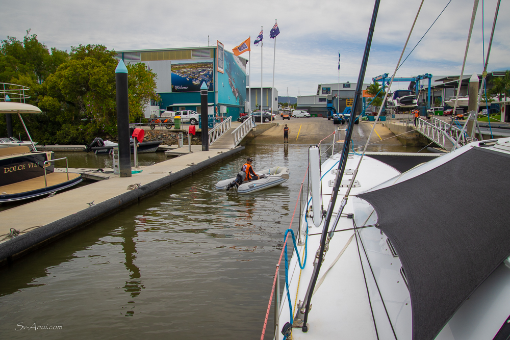 • It was handy parking the car underneath for shade and it really emphasised the size of the boat. Don’t know about the anchor winch to lift it up… another sacrificial pin at risk!