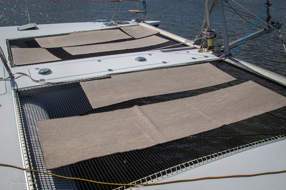The fortuitous thing about putting the carpets out to dry on the nets is that Wade, who is forever doing boat checks, found the split pin that holds the prodder pole had fallen off! Lucky we did not lose the prodder or him overboard while setting up the spinnaker!