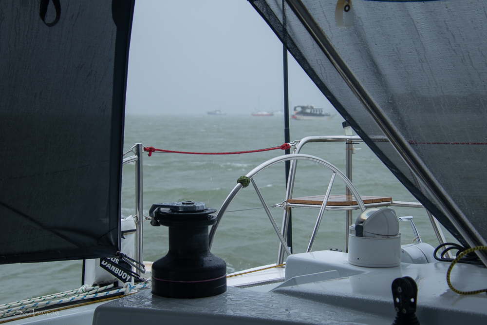 4.30am set up of the jib on the furler before the rain starts and the wind picks up!