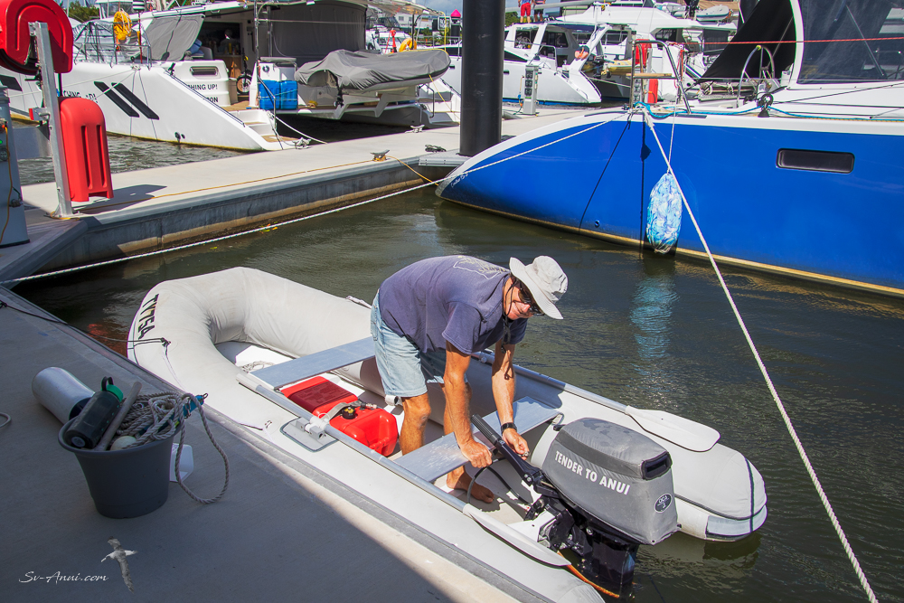 Not all painters are made equal! The beauty of using a skilled professional like Geoff is that you get a flawless finish – we can’t see where he has been! Such a difference with the way the hulls looked before. Now we’ll just have to clean the brown water line once we get away from the dirty river!