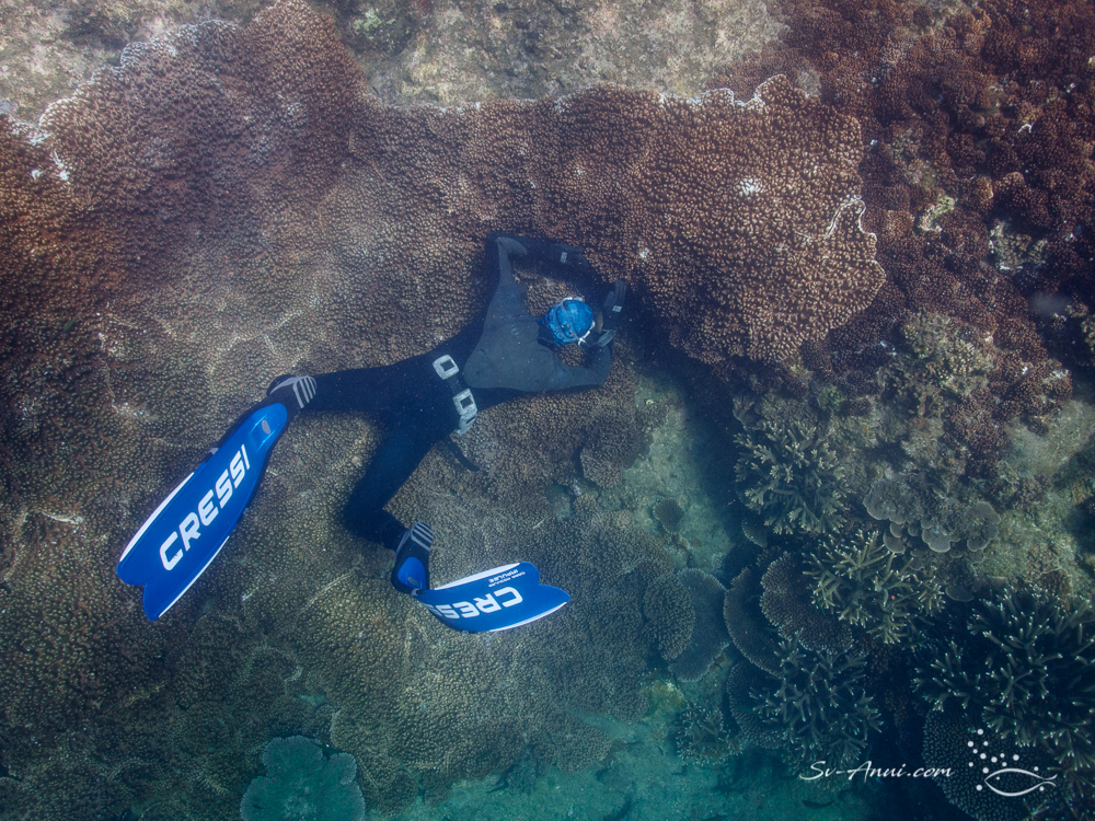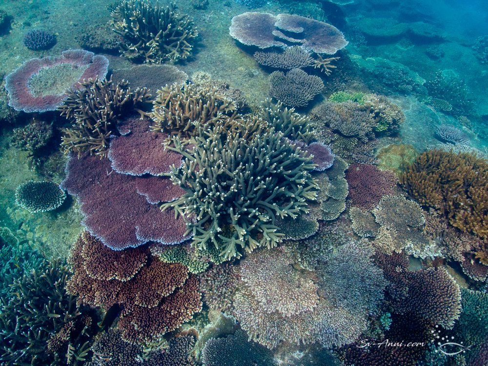 But donne the wetsuit, weights, fins and snorkel and you are in heaven: a magnificent coral garden, reminiscent of forest floors with mosses and carpets of leaves in their russet and green hues, unlike any other site we have visited.