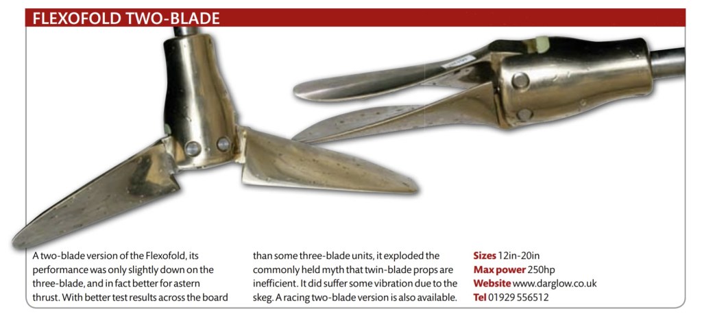 Of course with bigger engines, we needed bigger propellers. It’s a boat… one thing leads to another! We had Flexofold two blade folding props before and our suppliers, Headland Engineering, gave us the option of replacing the lot with three blade folding props, or keeping our hubs but fitting larger blades (18 x 14), thus saving two thirds of the cost, which is what we have done. For those interested in the results of a test comparing 15 different propellers for speed, thrust, drag, stopping distance and price, follow this link to the Prop Test!