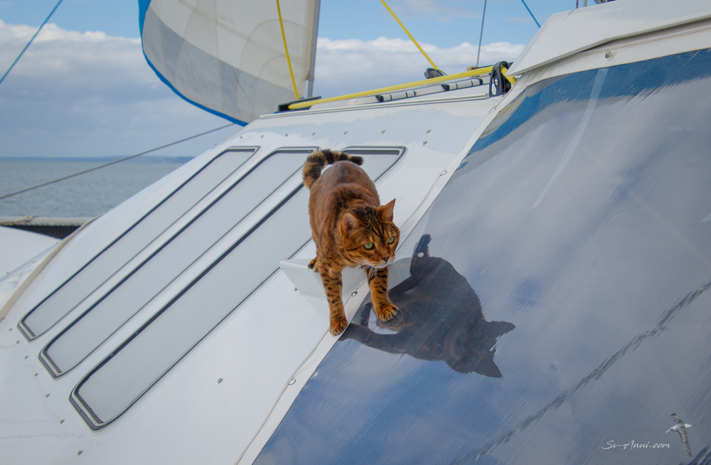 7. Happy birthday Bengie. My daughter has a male Bengal, his name is Tommy and about 5 years old. At the moment he is not well, stressed with anxiety. How do you deal with this while sailing the seas. Cheers from Penny off SV Aroha.
