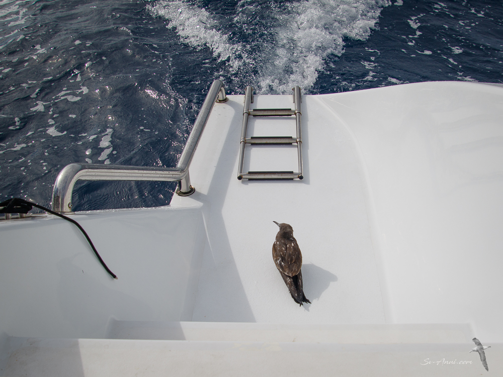 Birds were plentiful at Lodestone too: terns, booby birds, noddies. One particular noddy broke our heart. We called him Speckles because he was covered with white flecks (we later found they were splashes of guano). He came on board at the previous reef and stayed with us for two days, flying around the boat, landing on the front, resting on the boom, the deck, the sugar scoops. When we woke up the second morning, Speckles was looking rather worse for wear on the back step. We went for a snorkel. When we came back he had died. Very sad, but he chose Anui as his last resting place which is special.