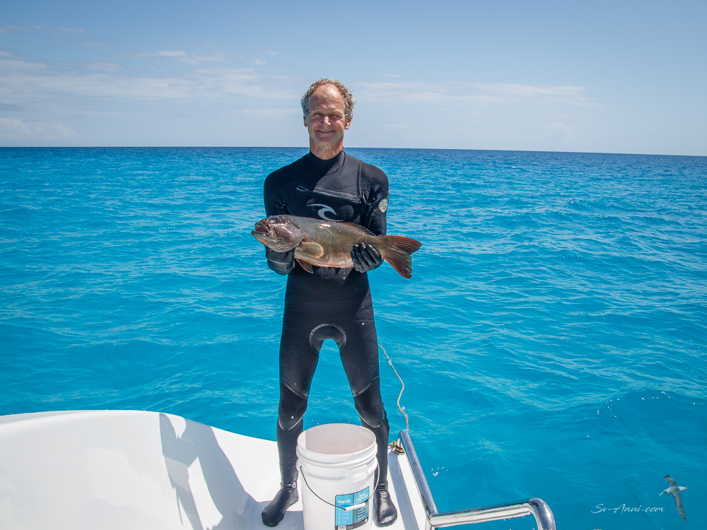 2. Wow. The resolution of the drone camera is impressive. The Anui looks so tiny in the first two shots. Was the drone even visible when it was flying so high up? I have never seen coral up close and the colors and textures of the coral in your photos, Chris, seem other-worldly. I love seeing all of the tiny colorful fish too, as well as the larger ones. I am particularly impressed by the size of the fish that Wade caught. Wow! It was great to see the action shots of your diving–I remember well all of the training you did.