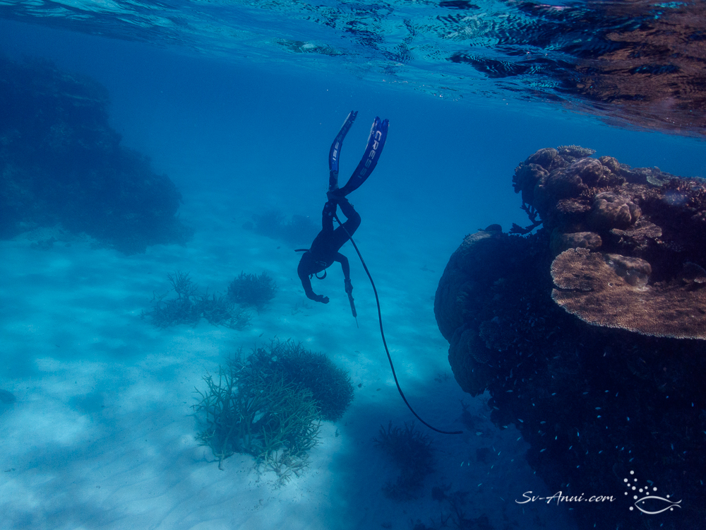 Anui amongst the coral heads!
