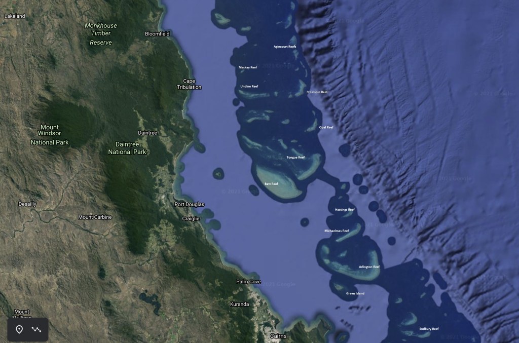 With nearly a week of calmer weather, we have decided to head a little bit further north of Cairns and explore a few reefs on the very outer rim of the Great Barrier Reef offshore of Port Douglas and Cape Tribulation: Opal Reef, St Crispin Reef and the Agincourt Reefs.