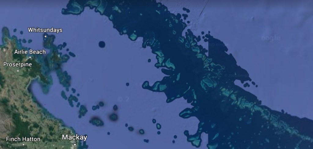 We have observed a significant difference between the inner and outer reefs. The satellite image below shows a section of the Great Barrier Reef. Within the dark blue stretch you can see two distinct lines of reefs which run along its entire length, an inner line, closest to the coast, and an outer line, furthest offshore on the edge of the Continental Shelf. There is also a string of continental islands between the mainland and the reef.