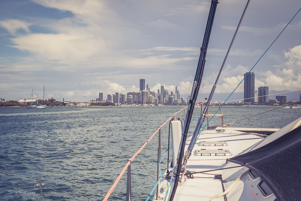 Our options for shelter on the Gold Coast were not exactly good either. The mangroves off Stradbroke Island were not particularly appealing. Anywhere on the Broadwater in Southeast weather is unprotected and being there during the Christmas/New Year holidays is ugly in the crowds, noise and wakes from hundreds of boats and jet skis. We have ended up treating ourselves and joining Oceaneer at Marina Mirage. It sounds better than it is though: helicopters launching and landing all day long in front of where we are, surge from the commercial tourist boats going in and out, no laundry facilities…