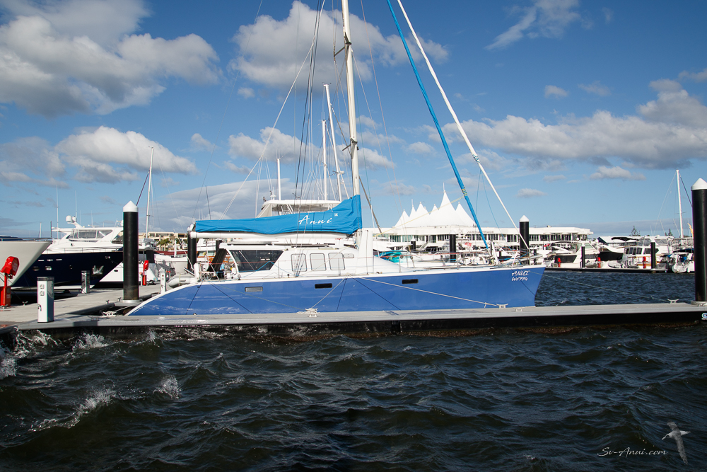 The weather has conspired to hold us here longer with Cyclone Seth raging. But we were safe at Marina Mirage … going deaf from the incessant helicopter flights overhead and the squeaking from the surge in 40 knot winds, but you can’t have everything!