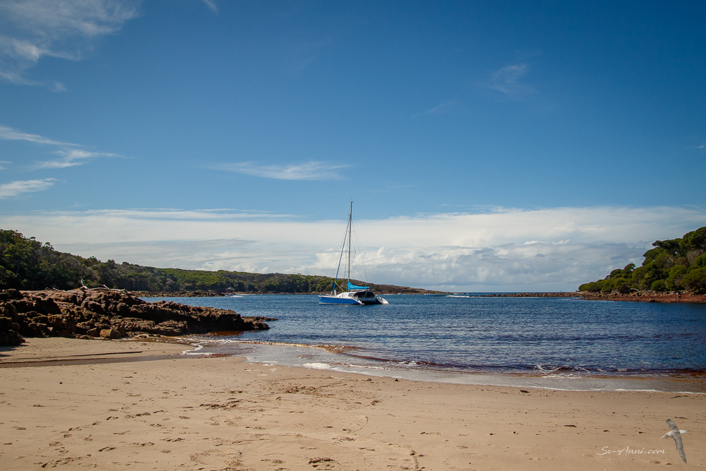 Our next treasured hideaway is not a straight forward place to get into and not always accessible because of the swell. But this tiny, picturesque bay on the rugged stretch of coast south of Eden is our all-time favourite anchorage so when possible we make a stop there.