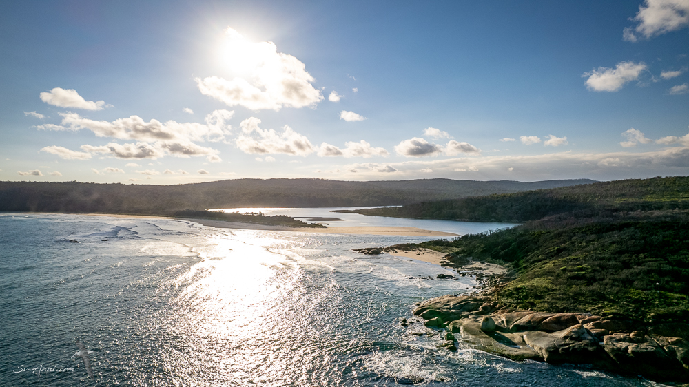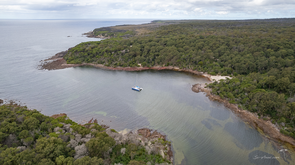 The aerials at the Skerries and Bittangabee – still learning about at what height to go, what angle to tilt the camera, and pre-planning the shots I want. it is a treat for us to see the the bird’s eye view of where we are anchored!
