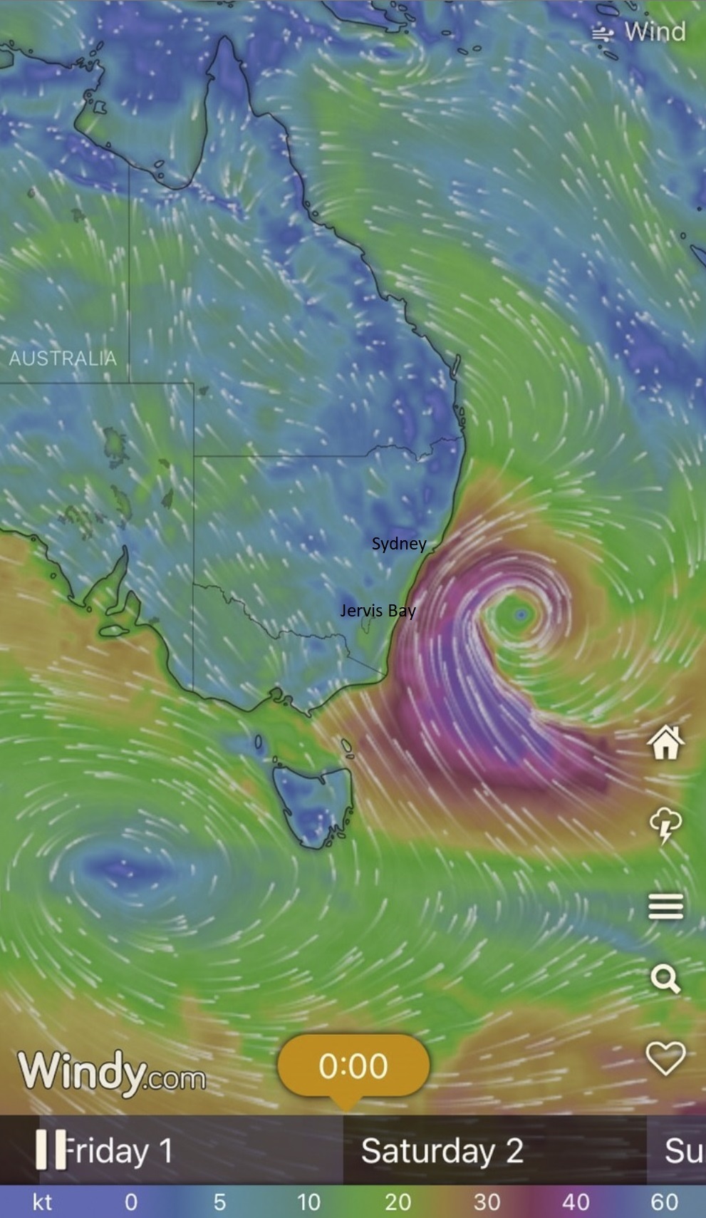 Ten days later, we are still in Jervis Bay and are unlikely to move until early next week. Hot on the trail of the East Coast Low came another trough and severe weather system!