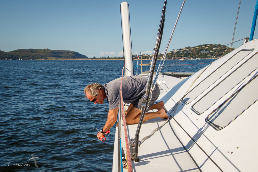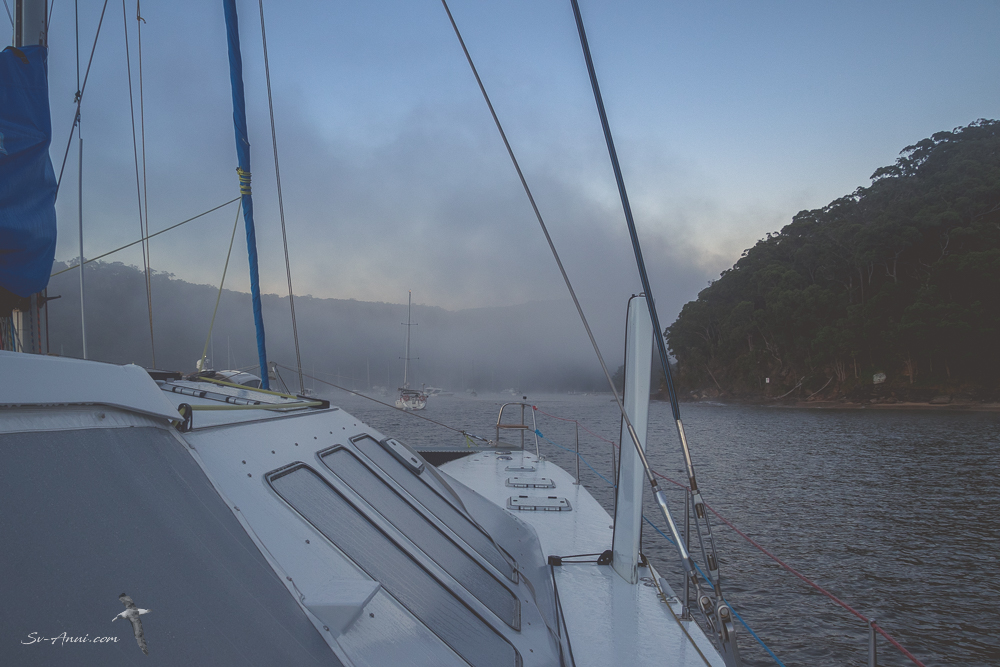 Throughout the Pittwater and Broken Bay area, most coves are either too deep to anchor in or have sea grass bottoms which makes the holding tricky. Most coves are peppered with moorings: club moorings, private ones, a few public ones. The rule with using a mooring as a visitor is that you can pick up any that is available, but if the owner or a club member turns up and politely asks you to vacate, you move without fuss and go and find another one. Well, it might work at most times of the year, when there are not many boats around, but at Christmas and Easter, it is a different matter! It is a bit like “Finders Keepers”. We witnessed a few heated discussions and stand over tactics with boats that should have moved refusing to do so. Pretty poor form really!
