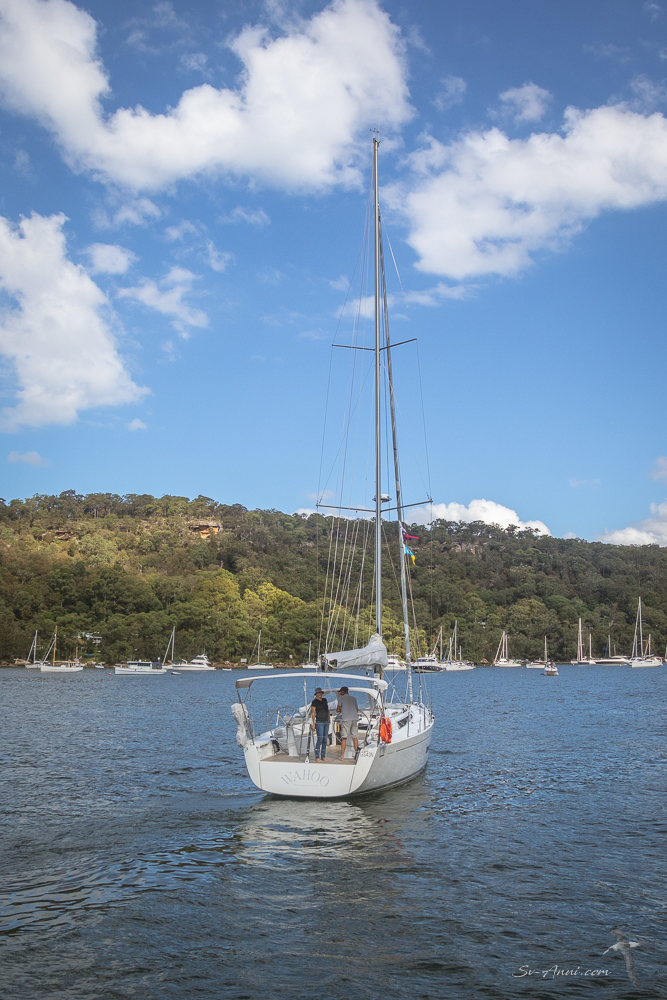 We had a rather pleasant sail from Jibbon Beach to the Pittwater. Actually it was an epic 40nm sail: in a light land breeze less than 10 knots with Anui doing wind speed. With the breeze slightly forward of beam she just goes like the wind and we get very excited!