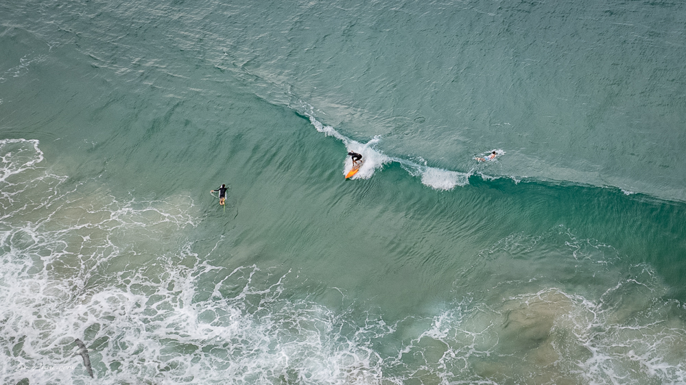 We had a bit of fun in between lots of appointments, with Wade going for a few surfs and Chris flying the drone. Wade is easy to spot on the orange board!