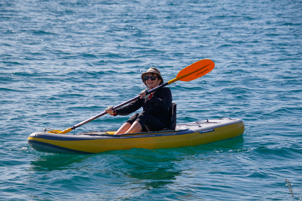This is always an interesting spot to explore at mid to high tide, as the salt water creek meanders through the mangroves. At low tide it dries out. Ann had never kayaked before and was looking like she was going out to sea when she first started paddling from Anui. Greg kept calling “follow me” while taking off in the opposite direction! We thought we might have to send the dinghy for a rescue, but they got the hang of it and disappeared up the creek with a paddle.
