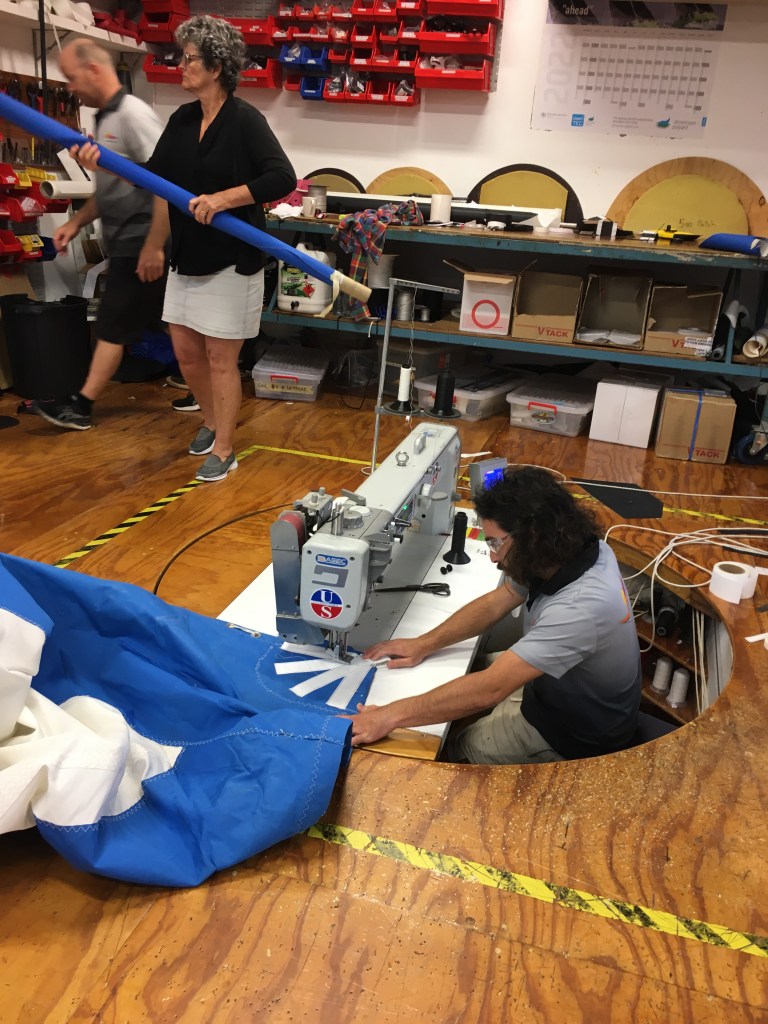 How about that sewing machine at your sailmakers! Looks like it could sew steel plates together …. I fondly remember doing minor sail repairs with a hand turned Singer … good fun …