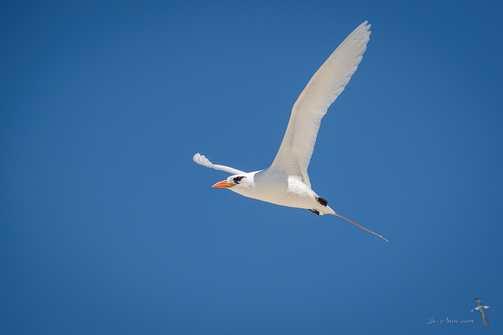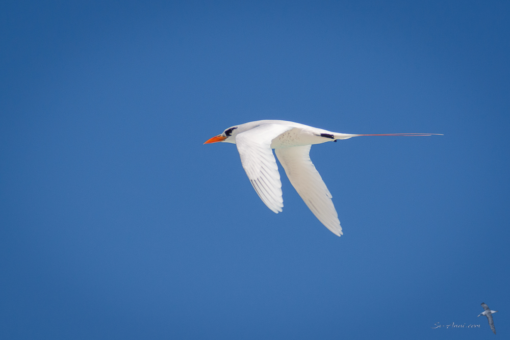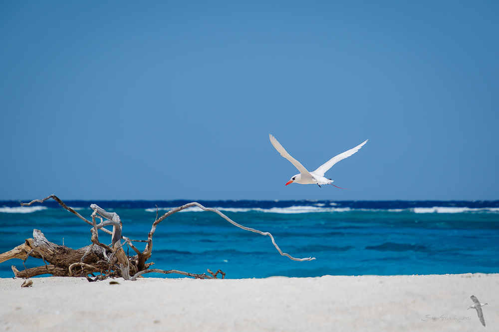 By far our favourite birds were the Red-tailed Tropicbirds. This time they were not just a few nesting under the bushes. They were in large numbers, flying and doing The Dance! Courtship display flights with two or more birds were on especially mid-morning, but really any time of the day at the end of the islet, and above our boats! What a spectacular sight.