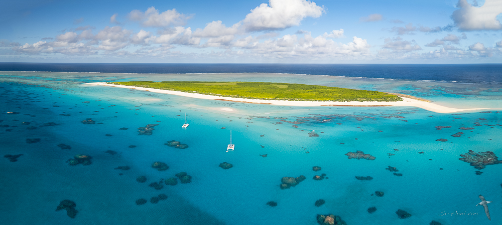 Oh what a feeling when you arrive at this cay: from the blue abyss 800m deep, to a 5m deep anchorage in sand, with graduations of aqua, turquoise and ultramarine all around. Welcome to our favourite Coral Sea anchorage to date: North East Herald Cay!