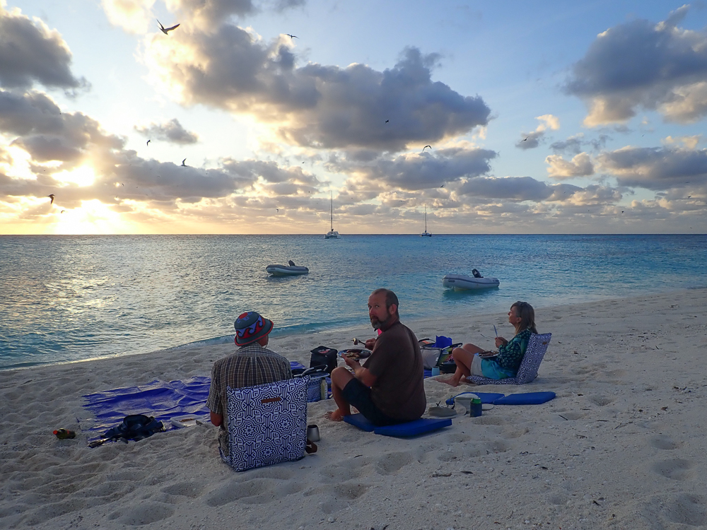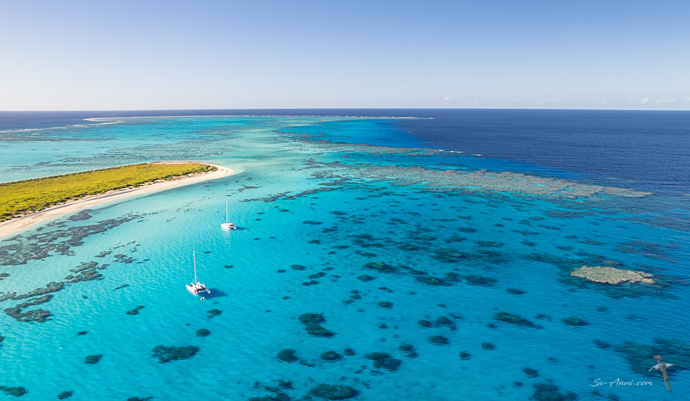 We loved it there and enjoyed the abundant birdlife, the scenery from the beach, the intensity of colours, the fish life during our snorkels, the aerial views we discovered thanks to the drone. It is the concentration of life over and under the waterline, the closeness to it all that were so special. We packed a lot in during our two days at South West Cay too while the weather held: beach walks, several snorkels, we cooked treats, enjoyed a meal on the beach with Windsong, watched for the elusive green flash at sunset.