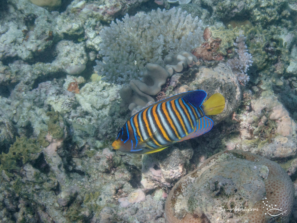 As usual we saw a few colourful fish like the Blackback Anemonefish, the Regal Angelfish, a pink Steephead Parrotfish, which is unusual because we normally see the blue variety.