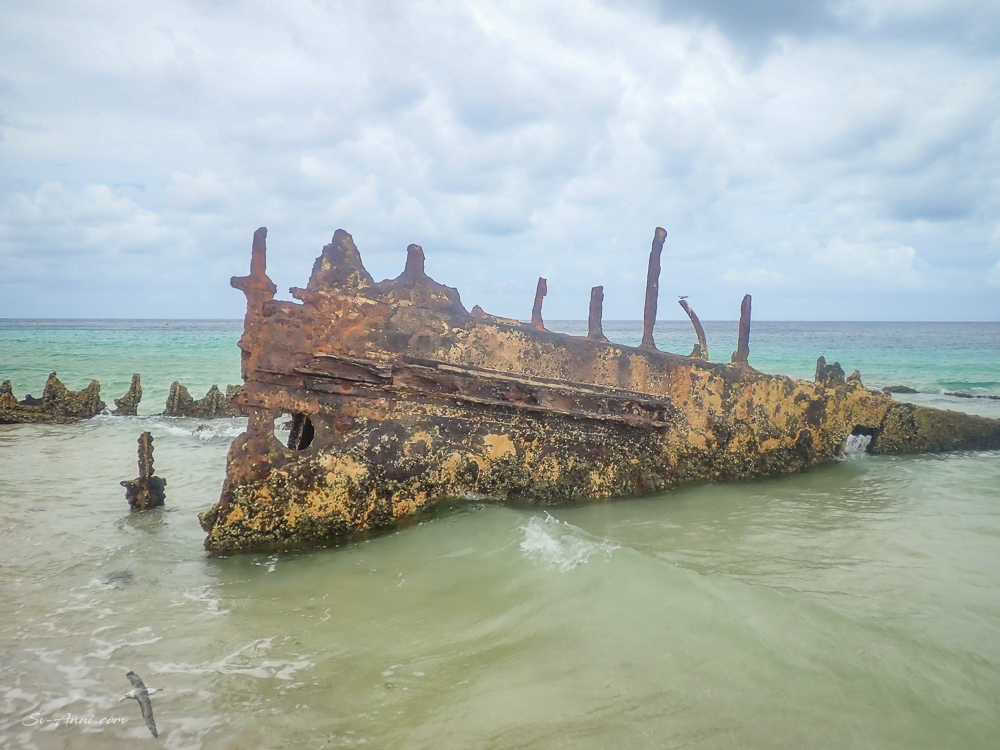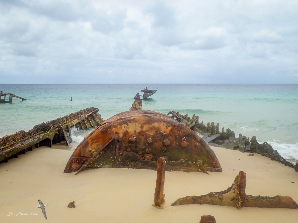 And we had a look at the wrecks on the beach there too. In the 1930s, three ships were scuttled in the area to form a harbour for small boats, a bit like at Tangalooma, but on a much smaller scale. Sand has now built up around the wrecks which just about dry out at low tide.