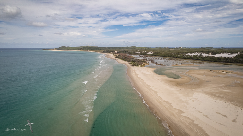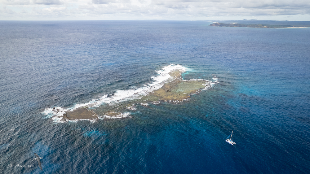 You can see the small isolated reef, Anui, and Cape Moreton in the distance. We are really close to Moreton Island.