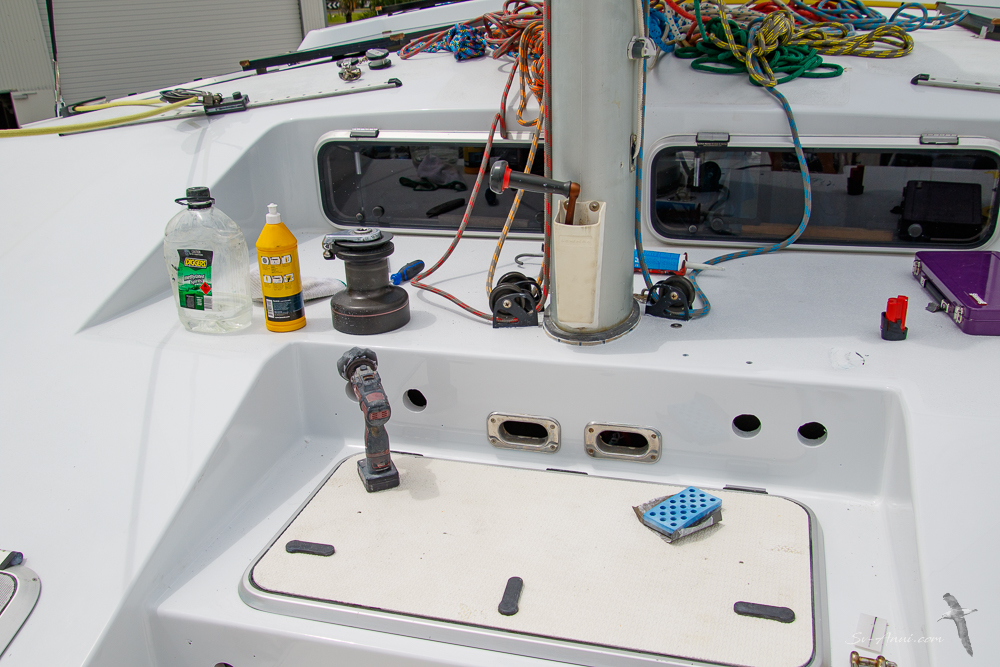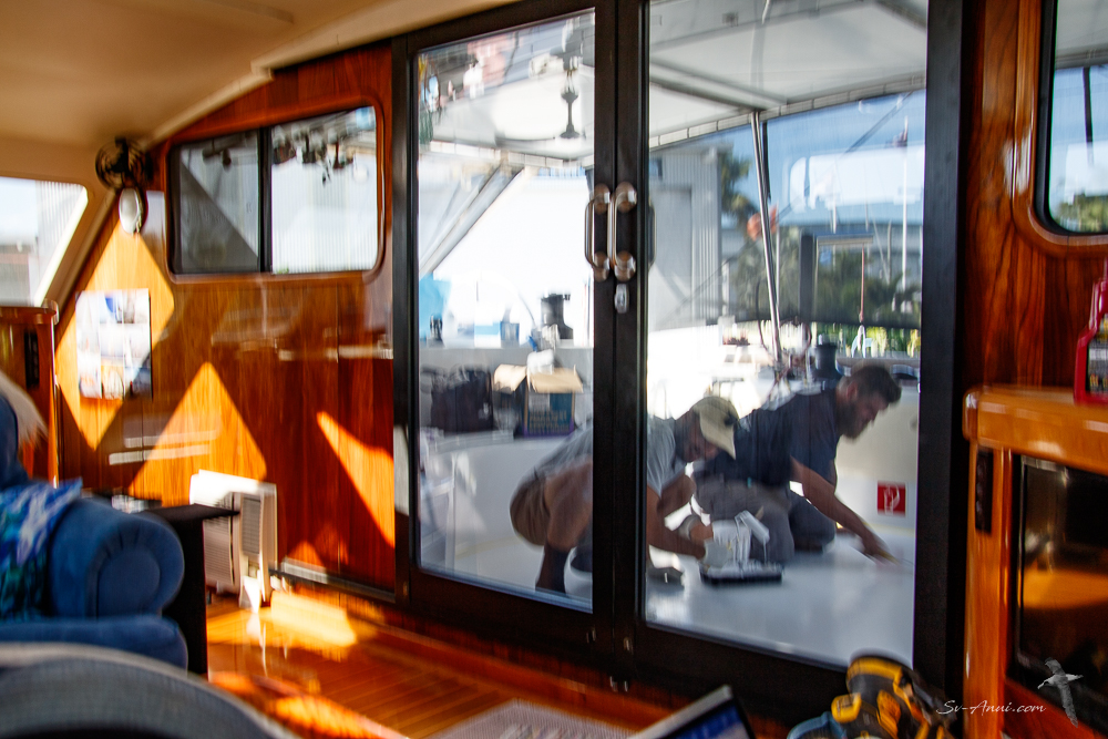 As well as the main contracted jobs, our own to do list was long this week. We had to tackle a few bits that carked it while we were out of the water, like one of the cockpit 12v plugs, the battery monitor, the power drill, the fan in our bedroom, the sump pump in the shower, the toilet pump… it is endless! We are grateful Ryan lent us his car so we could drive to Bunnings, RTM and Whitworths for all things marine! There might have been trips to Dan Murphy and Woolies too. A few of our friends often say “surely, there is nothing left to replace on Anui”. Well nearly; we soon will be at the stage of replacing what we’ve replaced!