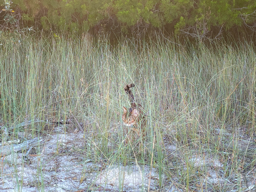 We got ready to leave the Gold Coast during the weekend: quick shop, laundry, goodbyes to friends and family. We even took our ship’s cat for the last of her beach walks for a while. Bengie likes walking and scratching in the sand. But there is something about ambling through the reeds in particular that she loves. Whether it is the smells, the feel of the grasses rubbing along her body, the sensation against her whiskers… and then there are the dead leaves with something heavenly (read evil) that she just must drag her face and body through. It is nice to see her obviously enjoying herself.