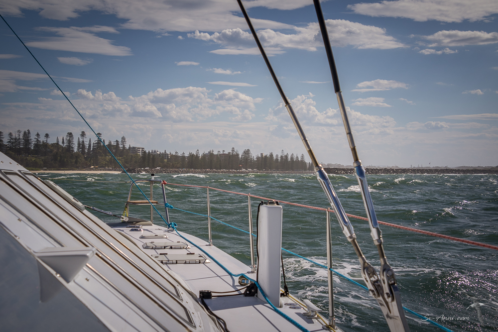 After checking and rechecking and re-rechecking the forecasts, we knew we had a short window of northerlies – just two days – to get south. It was going to be tight! Wade decided we would leave the Gold Coast on Sunday, motor out through the Seaway in a light SE breeze bound for Byron Bay 50nm away, then use the next two days of strong northerlies to cover the 100nm to Coffs Harbour and 70 to Port Macquarie. And we would have to pray that the swell would not be too bad so we could get into Port!
