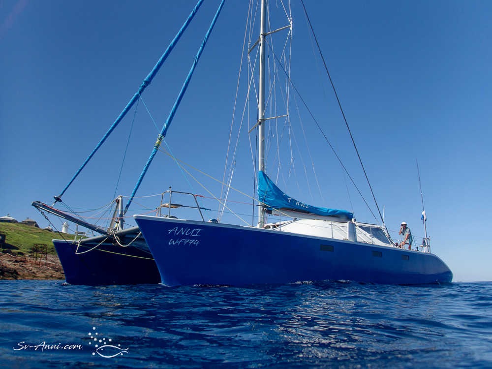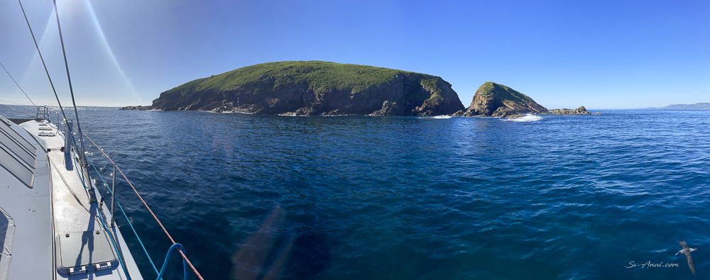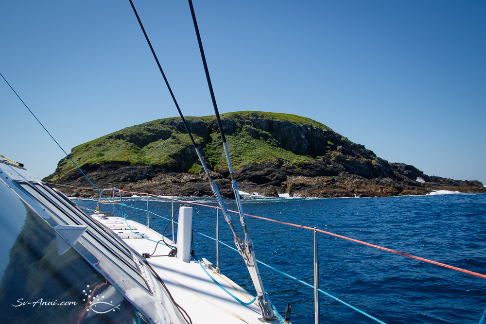 To really appreciate these islets you need very calm conditions as they are exposed to a fair amount of current. Although there are a few public moorings, they are for vessels of either 10m or 13m length maximum, thus too small for Anui. The islets being Sanctuary Zones, no anchoring is allowed. Our approach was therefore to take turns at snorkeling: one of us would be in the water, the other would stay on the boat milling around, then we’d swap… not perfect but better than risking a fine or coming adrift on too small a mooring.