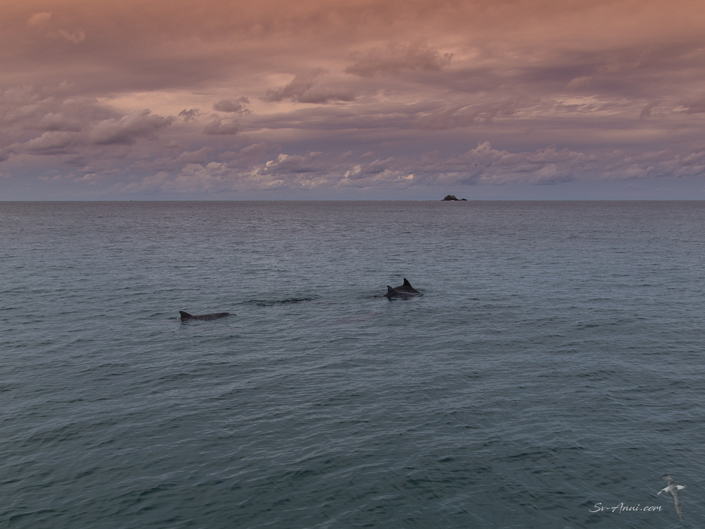 Visiting dolphins as we leave Byron Bay with Julian Rocks in the distance