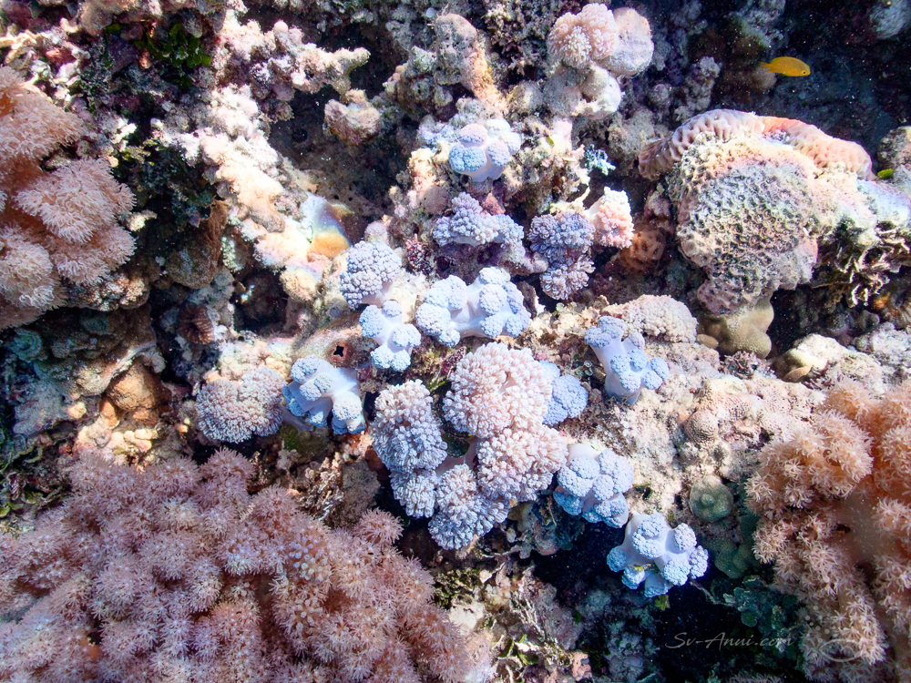 We tried a snorkel. There was plenty of soft coral, regrowth after bleaching, lots of life, but lots of current too. Right next to the dinghy was an orange anemone with its dwellers, a purple Acropora, some xenia and sarcophyton… just beautiful, colourful, alive! But it was such hard work against the flow that we did not stay long nor venture far.