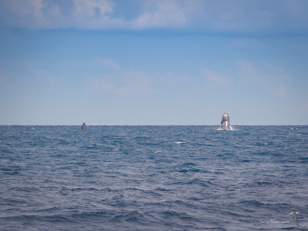 The only sounds: schools of fish occasionally jumping out, escaping a predator, and the blow of two whales logging nearby, a mother and her calf. We were willing them to drift towards our boat, whispering “come, come closer”.