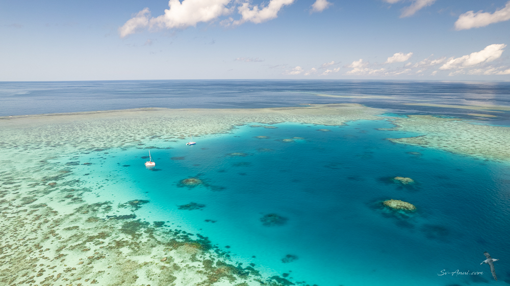 With all the reef hopping we do, it is getting harder to find spots we have not been to. There are many, many reefs along the Great Barrier Reef, but the ones that offer what we are looking for in a comfortable anchorage are not that numerous! We study the satellite maps for reefs which are horseshoe shaped, with a patch of aqua water less than 8m in depth over sand and with 100m of swing room clear of bommies… oh and not too stressful to meander our way in!