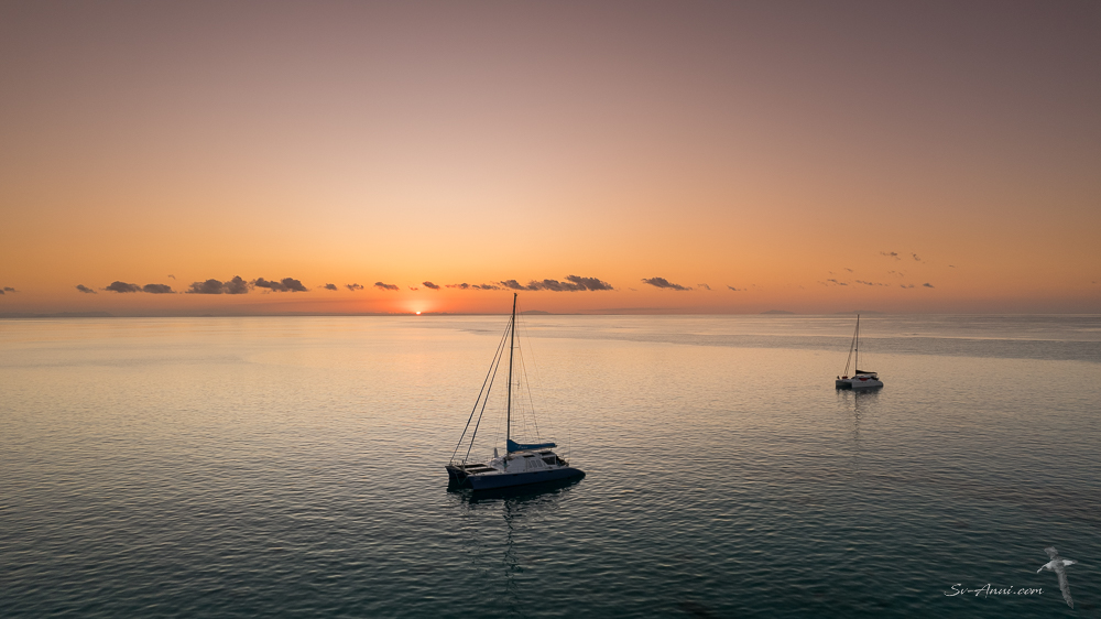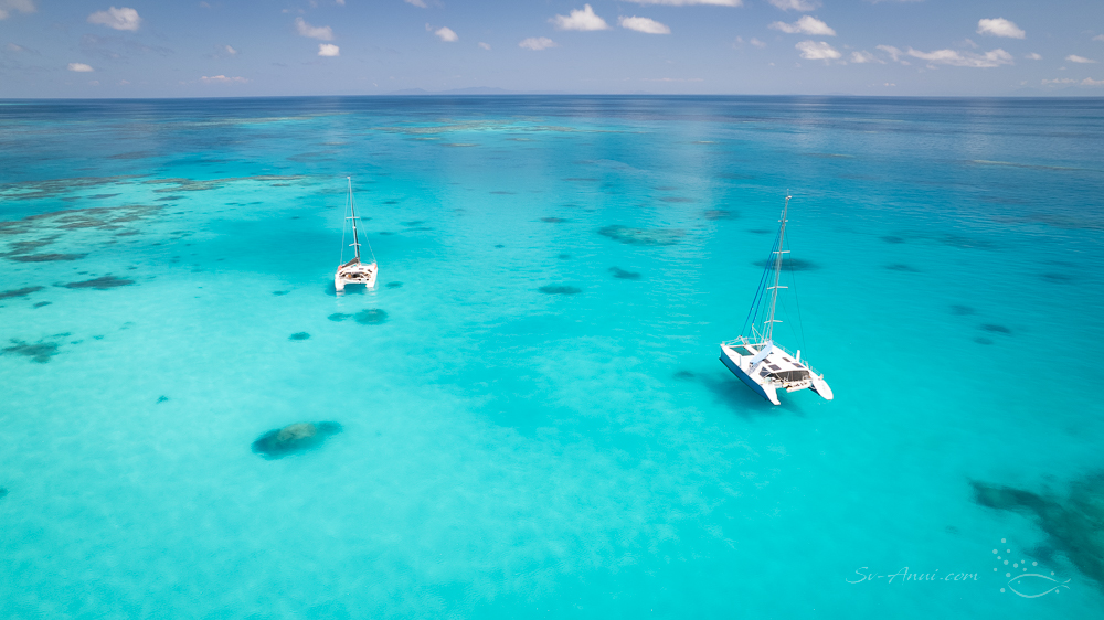It took us a while to find an anchoring spot we were comfortable with, dropping the pick only to lift it up again because there was always one or two bommies lurking too close! On the third attempt we settled on a spot a little deeper than we would have like, in 11 meters of water. Bossa Nova also had trouble finding their possie. But with totally calm conditions, we figured we would both be okay.