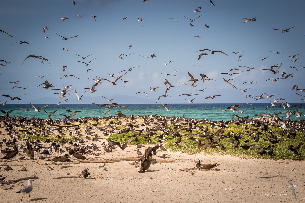 The sky over the cay was dark with flying birds and the noise was unbelievable. The western cay is a bird sanctuary with a large seabird population, in particular boobies, terns and noddies. How they all fly in close proximity without colliding is a wonder!
