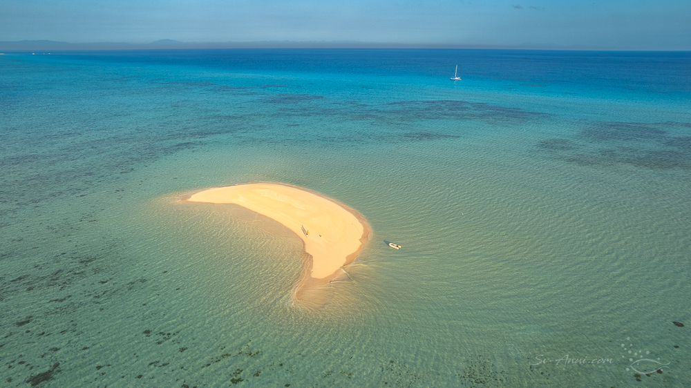 The next day, the conditions had lightened so we moved further east along the reef, a first for us. We anchored in front of another little cay, away from commercial operators with their loads of tourists and from other boats… much better! Here are some aerial shots.