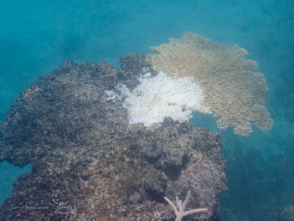 Typical reef state at Little Broadhurst – bleaching and COTS damage