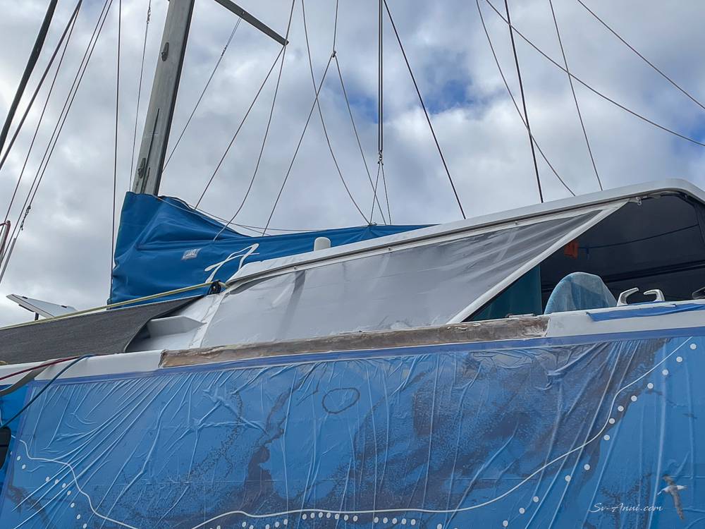 2. Wow, I am glad that the rotten glass was discovered and repaired! That could have been a disaster when underway. You guys are stuck in dry dock a long time now, bummer. Cross your fingers your splash back is coming soon!