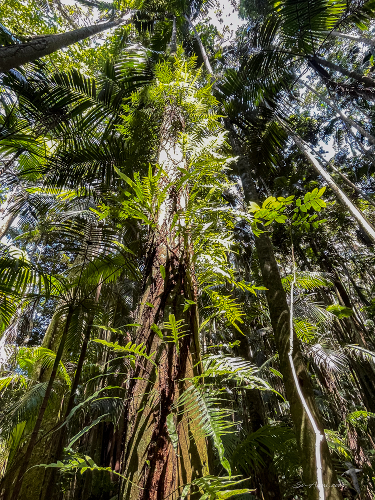 The tallest rainforest trees we saw, although not able to identify them, were impressive because of their size, straightness and ability to reach right to the top of the canopy. Some were eucalypts, other broad-leaved hardwood evergreens and conifers, towering anywhere from 30 to 70m high.