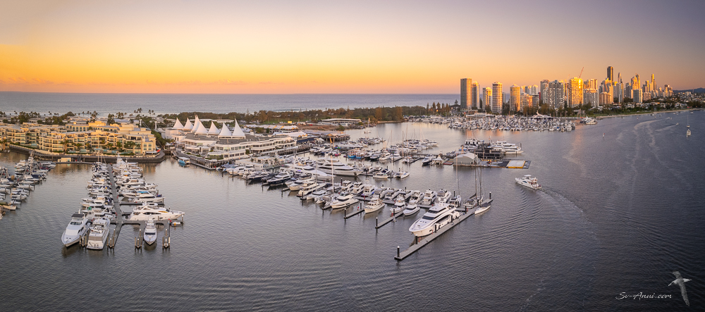 And yesterday was the first time we could send the drone up to give you an aerial view of our surroundings at sunset – steady enough pilot’s hand and calm, dry conditions! We are in Berth A01 at Marina Mirage. Can you spot Anui under all her tarps for shade and rain protection? She must look decent enough for the upmarket marina, even with them on, as we haven’t been asked to remove them! Sometimes getting cancer treatment earns you a few favours.