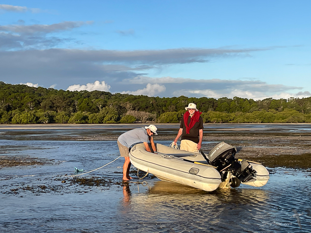 We timed our dune climbs to coincide with near high tide, but still had to anchor the dinghy a fair way out and found it high and dry when we got back. We all ended up stepping on urchins with our bare feet… ouch!  We learnt our lesson: don’t walk on the sea grass without footwear! Wade was the worst victim and spent hours digging the spines out!